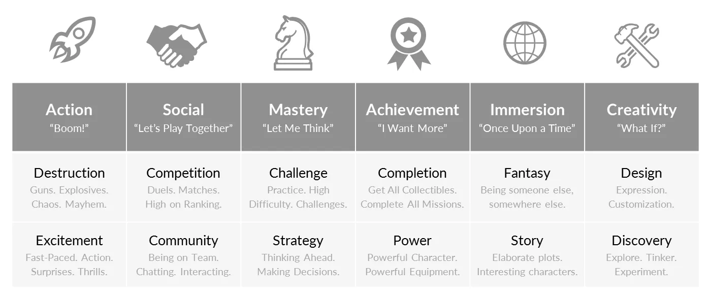 Quantic Foundry - Gamer Motivation Model⚓︎